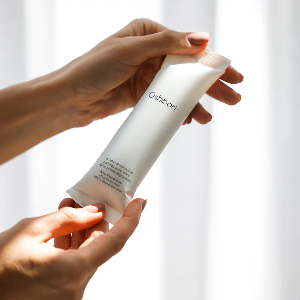 Delight your clients with Oshibori refreshing towels, ideal for luxury hotels, fine dining restaurants, spas, airlines, wellness centers, fitness studios, private clubs, corporate meetings, premium events, retail, and more