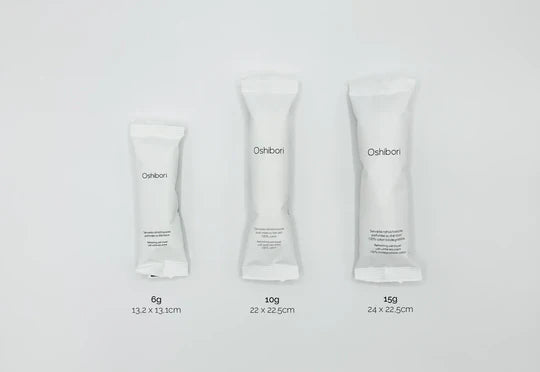 Our best-seller, and highest-quality, most luxurious product, is Oshibori 15 grams, much appreciated for its thickness, which makes it a genuine single-use face square.